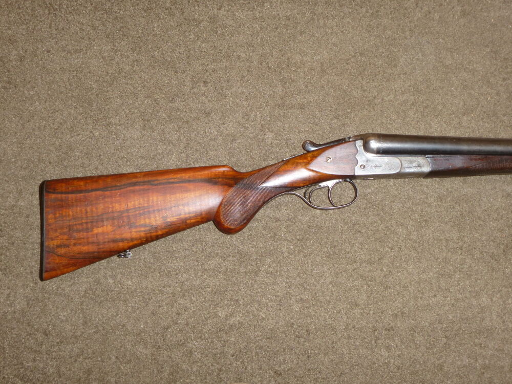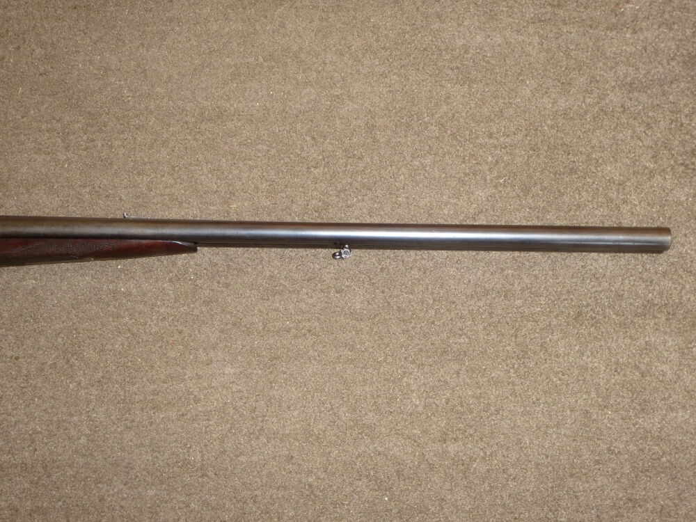 gebrauchte Doppelflinte, Haenel Suhl, Kaliber 12/70, Beschuß 1950, Schaftlänge 35,5 cm, Lauflänge 72 cm, Brünierung teilweise abgegriffen und fleckig, Holz diverse kleine Kratzer und Druckstellen ...weiterlesen