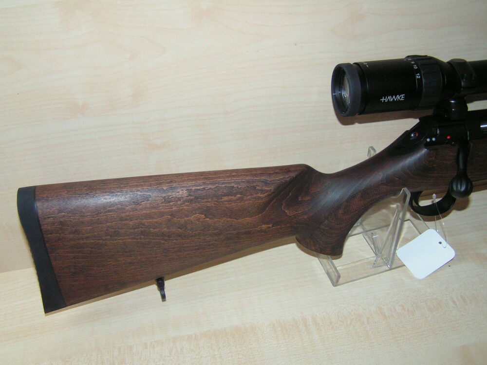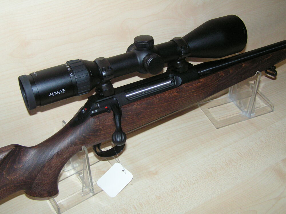 Repetierbüchse Sauer & Sohn. Modell 100 Classic im Kaliber 308 Win. mit Holzschaft, 51 cm Lauflänge mit Mündungsgewinde, 5 Schuß Magazin, Weavermontage und Zielfernrohr Hawke Endurance 3 - 12 x 56... ...weiterlesen