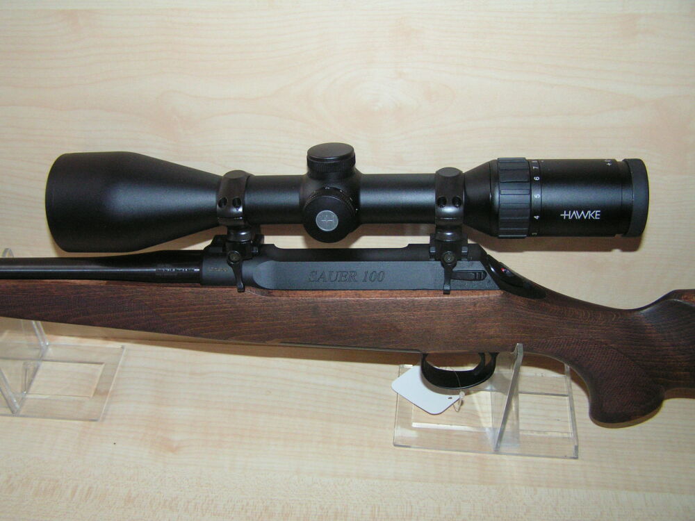 Repetierbüchse Sauer & Sohn. Modell 100 Classic im Kaliber 308 Win. mit Holzschaft, 51 cm Lauflänge mit Mündungsgewinde, 5 Schuß Magazin, Weavermontage und Zielfernrohr Hawke Endurance 3 - 12 x 56 Leuchtabsehen 4.