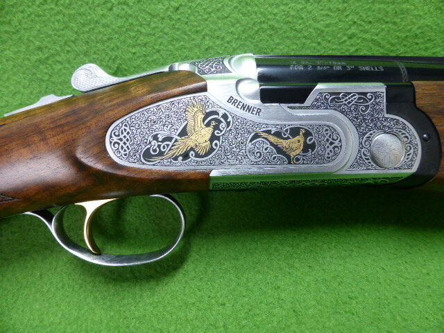 Biete eine neue Bockdoppelflinte aus dem Hause Brenner Modell BF-20 Premium Gold im Kaliber 12//76 mit einer Lauflänge von 71cm und einem Schaftabstand von 37 cm. Die Flinte hat sehr schöne Tiergravuren auf der Basküle und einen schön gemaserten Holzschaft. Zum Lieferumfang gehört ein verschließbarer Hartschalenkoffer sowie Wechselchokes und eine Bedienungs⁷