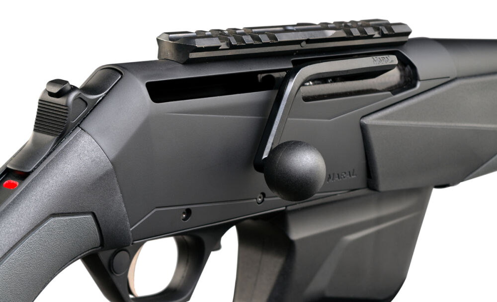 Das Magazin mit 4 Schuss, sowie die ebenfalls im Lieferumfang enthaltenen Variante mit 10 Schuss, lässt sich schnell und einfach Wechsel und schließt formschön in einem Bild mit der Waffe ab.. Der Auslösehebel sitzt ergonomisch optimal vor dem Abzugsbügel. Der Abzug löst bei ca. 1400 g aus. Der Spannschieber liegt hinten am Systemkasten und ist angenehm an die Schaftform angelehnt. Der Spannvorgang ist geräuscharm und leichtgängig. Beim Repetieren selbst bleibt der Spannschieber in der oberen Stellung und das Schloss ist automatisch gespannt.