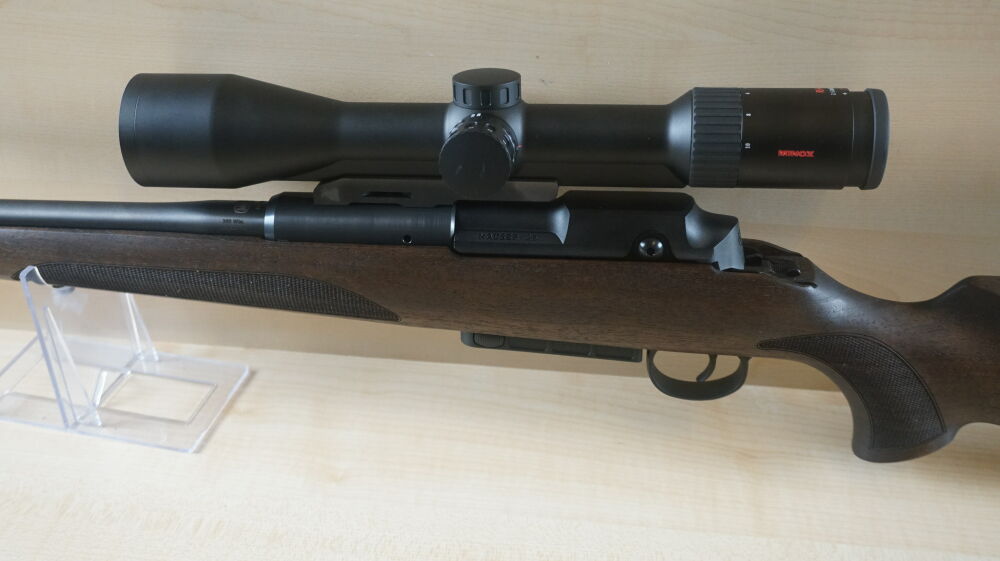 Geradezug - Repetierbüchse Mauser, Modell 25 Pure im Kaliber 308 Win. mit Holzschaft, 51 cm Lauflänge mit Mündungsgewinde, Festmontage und Zielfernrohr Minox, RS4, 2,5 - 10 x 50 Leuchtabsehen 4. ...weiterlesen