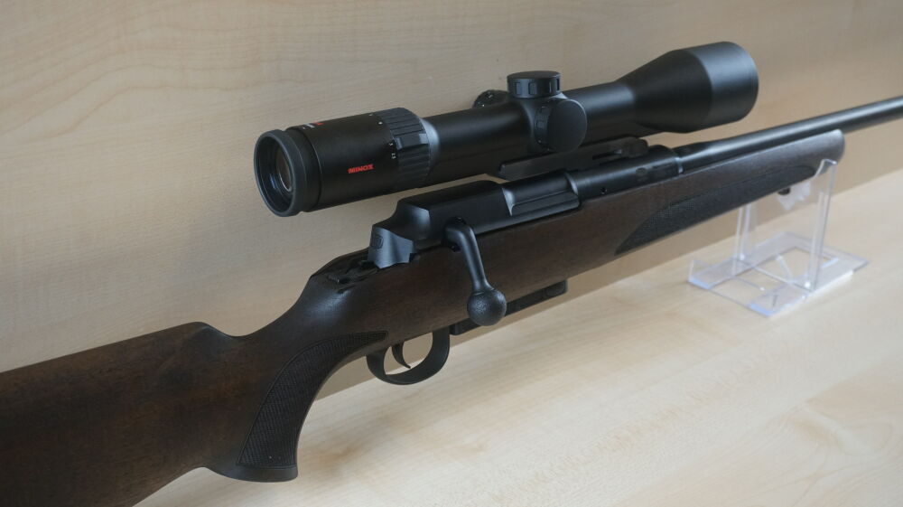 Geradezug - Repetierbüchse Mauser, Modell 25 Pure im Kaliber 308 Win. mit Holzschaft, 51 cm Lauflänge mit Mündungsgewinde, Festmontage und Zielfernrohr Minox, RS4, 2,5 - 10 x 50 Leuchtabsehen 4.