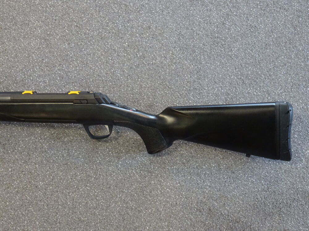 Die X-Bolt Composite Black kommt mit einem sechseckigen Kammergriff (optional wechselbar). Zusätzlich ist der Lauf mit einem M14x1 Mündungsgewinde ausgestattet für die einfache Montage von Schalldämpfern oder Mündungsbremsen, Das Gewinde ist durch eine glatte, laufbündige Abdeckung geschützt. Die Büchse wird mit einer zusätzlichen 7mm Zwischenlage geliefert für den bestmöglichen Anschlag und eine reduzierte Rückstoßwirkung.