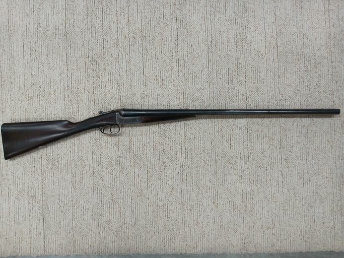Doppelflinte H.E. Akrill mit Laufbündel der Fa. Westley&Richards im Kal. 16/65, Doppelabzug, Lauflänge 70cm, automatische Sicherung, Gravurplatte im Hinterschaft, Schaftlänge 364mmm, dem Alter entsprechende Gebrauchsspuren.