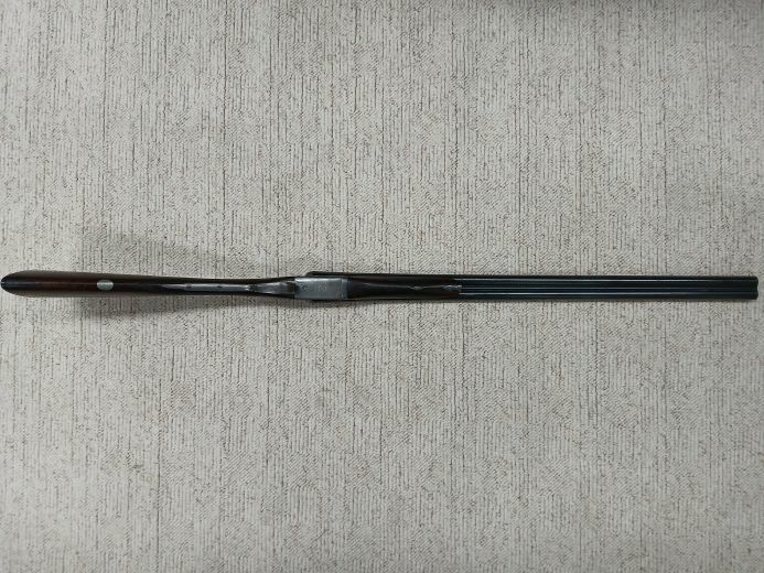 Doppelflinte H.E. Akrill mit Laufbündel der Fa. Westley&Richards im Kal. 16/65, Doppelabzug, Lauflänge 70cm, automatische Sicherung, Gravurplatte im Hinterschaft, Schaftlänge 364mmm, dem Alter ent... ...weiterlesen