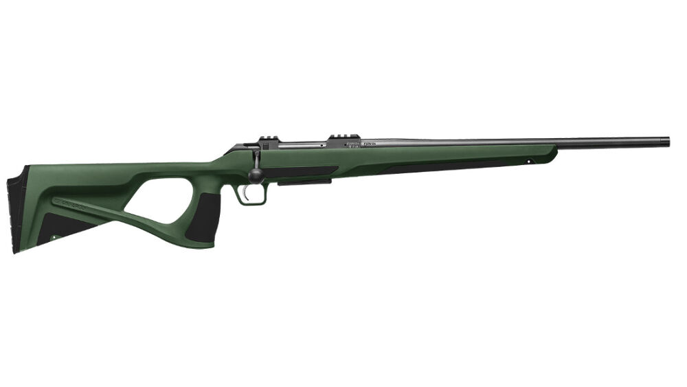 Die 600 ERGO ist aus der CZ Premium-Repetierbüchsen Modellreihe und verfügt über einen Schlanken Lauf und einem speziell entwickelten Lochschaft aus glasfaserverstärktem Polymer in grün mit schwarzen Anti-Rutsch Einlagen am Vorderschaft, Pistolengriff und Hinterschaft.