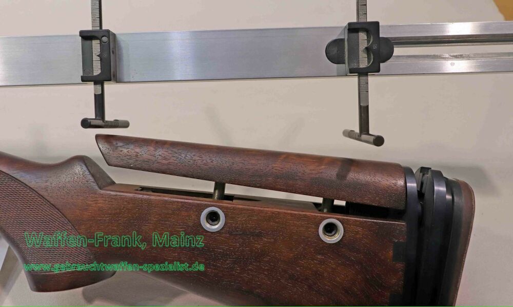 selten geschossenes Gelenkgewehr, als Unikat/Sonderanfertigung von Firma "Waffen Störmer" gefertigt, Choke 1/2-1/1, 10mm breite Sport-/Parcourschiene, bereits mit verstärktem Verschluss, mit auswechselbaren Stützflankenbacken, umschaltbarer Einabzug, in Höhe und Länge verstellbarer Hinterschaft, mit zusätzlicher Alu-Prüf- und Messschiene, mit zwei entsprechend verstellbaren Messanschlägen, um die beim Schießen ermittelten perfekten Schaftmaße auch mechanisch übertragen zu können...für jede Schießschule/-lehrer und Schäfter und Büchsenmacher ein Muss, um den perfekten Flintenschaft zu ermitteln......Unikat inkl. Zubehör
