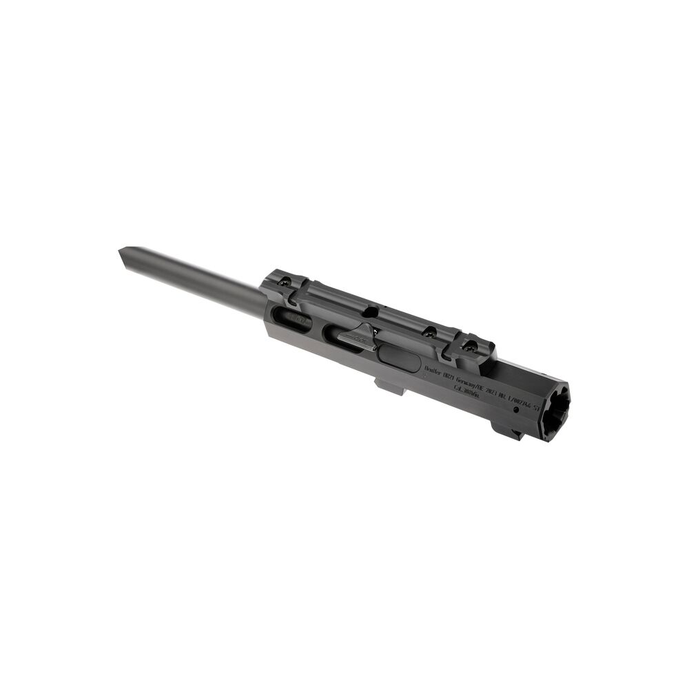 Der Austauschlauf für Dentler DR21 mit Grundschiene Basis oder Basis Vario und Mündungsgewinde M15x1 bietet eine innovative Lösung für den einfachen und präzisen Laufwechsel. Die Konstruktion erlaubt eine Gesamtlänge des Geradezugrepetierers von nur 870 mm bei Mini- und Standardkalibern. Das Magnumkaliber nutzt eine Lauflänge von 600 mm. Dank dieser Bauweise lässt sich die Treffpunktlage beibehalten, was eine konstant hohe Schussgenauigkeit fördert.