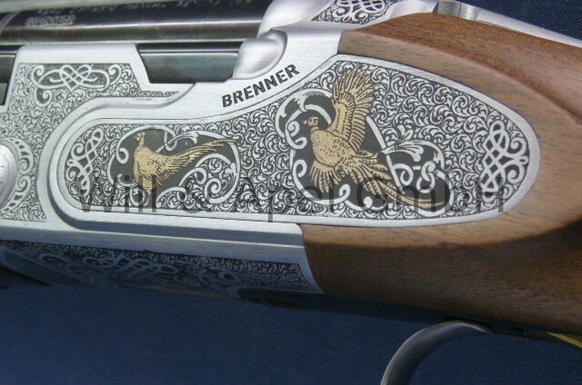Brenner BF 20 Gold Kaliber: 12/76 Lauflänge: 71cm Bockdoppelflinte Wechselchokes Stahlschrotbeschuß Basküle mit Fasan, goldabgesetzt ...weiterlesen