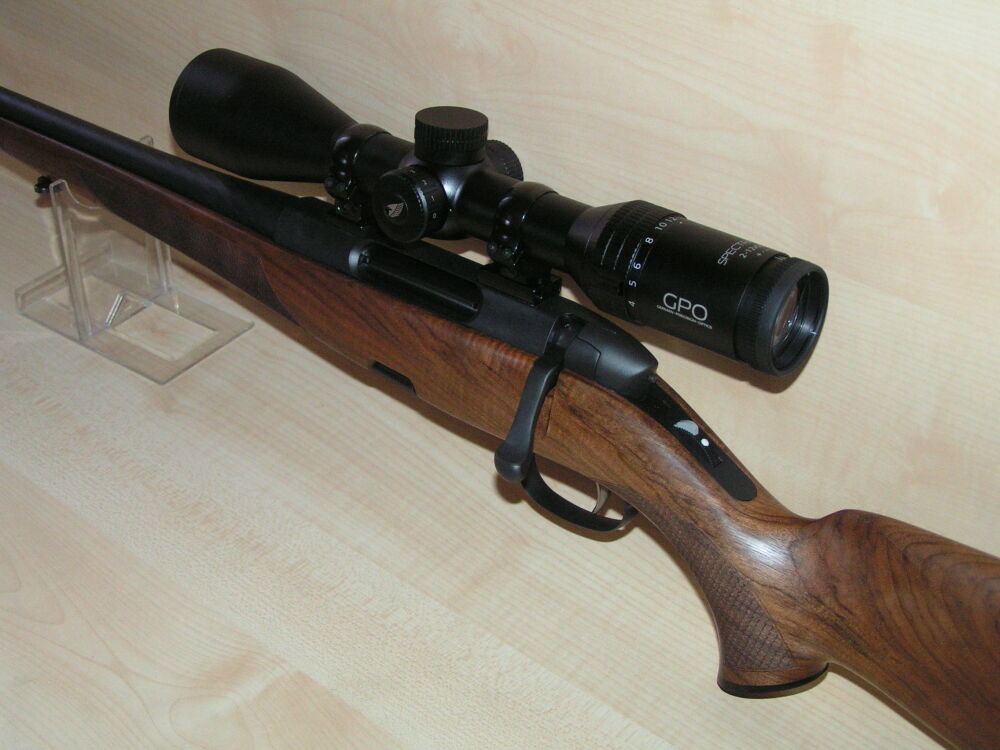 Linkssystem Repetierbüchse Steyr Mannlicher, Modell CL II im Kaliber 308 Win. mit 51 cm Lauf mit Mündungsgewinde, Weavermontage und Zielfernrohr GPO, Spectra 5x, 3 - 15 x 56i Leuchtabsehen 4.