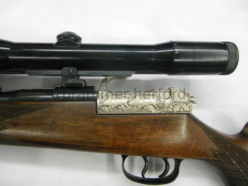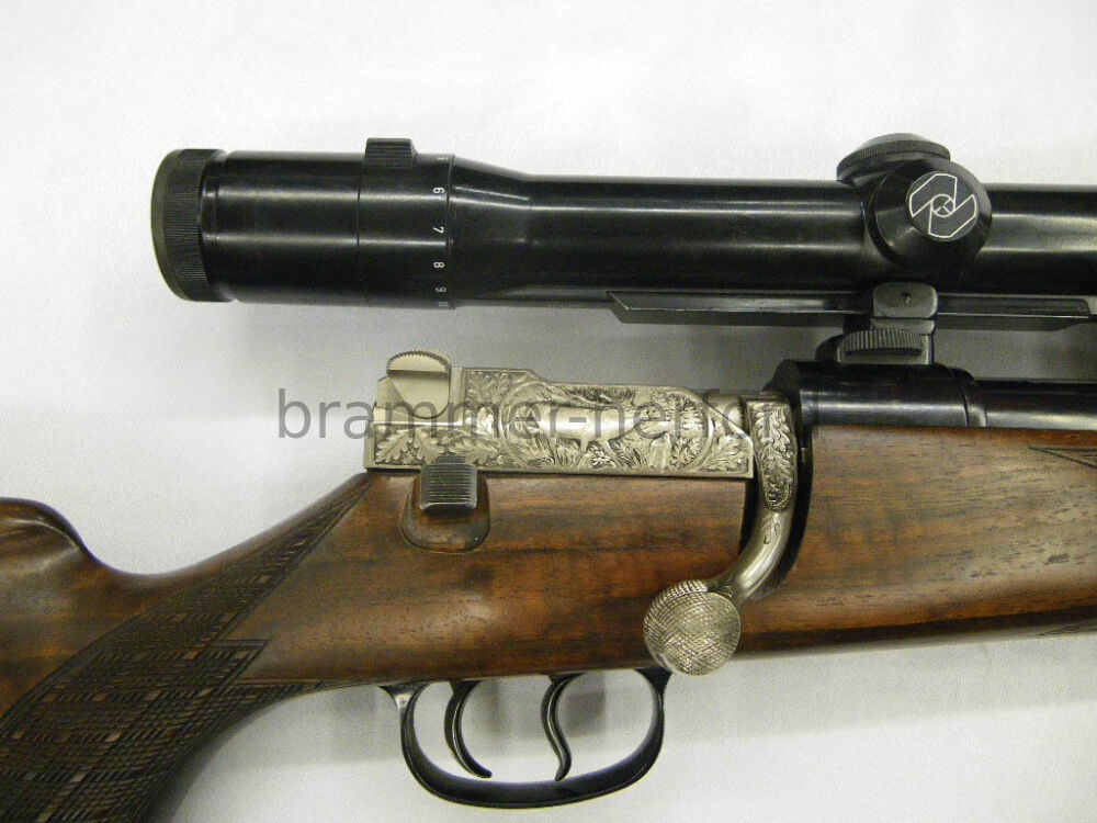 Diese gebrauchte Repetierbüchse von Mauser Modell 66 S hat das Kaliber 7 x 64. Die Waffe hat eine erhaben gestochene Luxusgravur - links mit 2 Stück Schwarzwild und rechts ein Rothirsch. Montier... ...weiterlesen