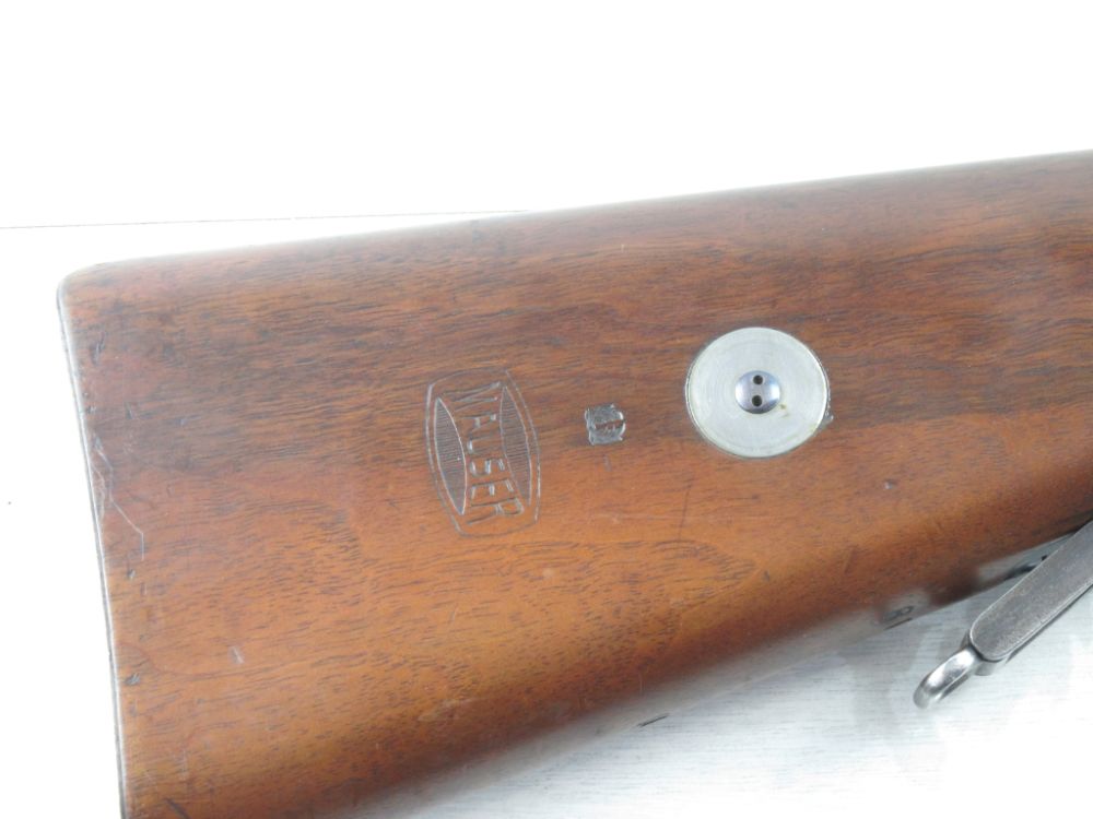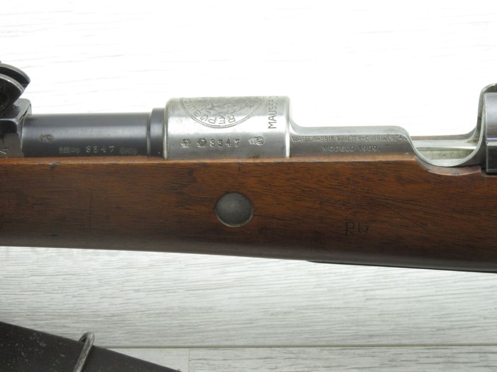 Waffe in sich Nummerngleich, Verschluss in sich auch Brünierung bestens erhalten Schaft bis auf kleinere Druckstellen sehr schön, Putzstab vorhanden Seltene Repubblica der Peru Variante von 1909, selten zu sehen Gefertigt bei Mauser in Oberndorf |