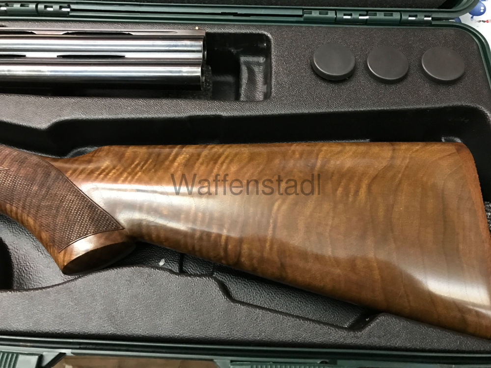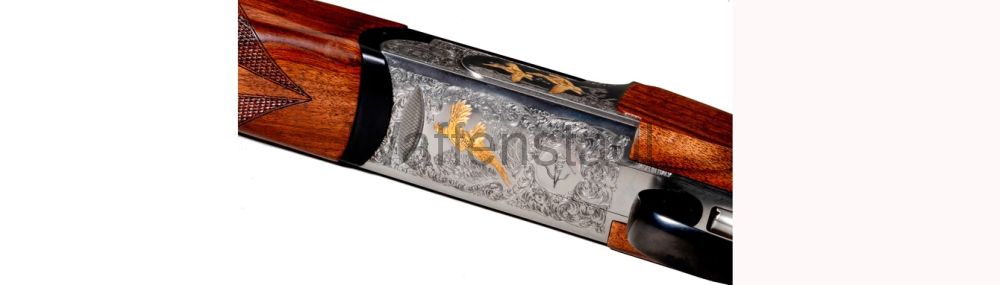 Dazu zählen eine aus massivem Stahl gefräste Basküle, eine herausnehmbare Bazugsplatte, ein Boss Verschluss und mit Silberlot verbundene Läufe. In diese Läufe fließen 50 Jahre Erfahrung ein, sie setzen neue ballistische Maßstäbe.