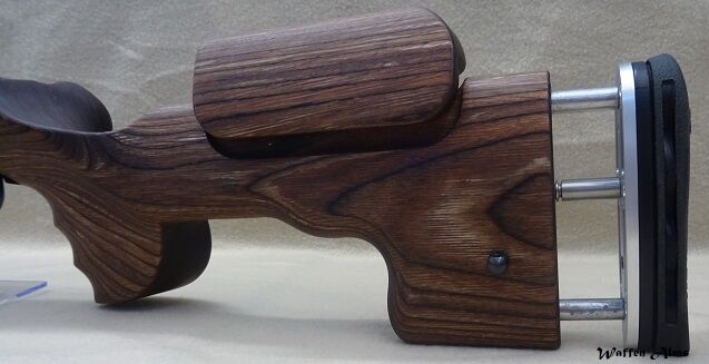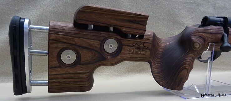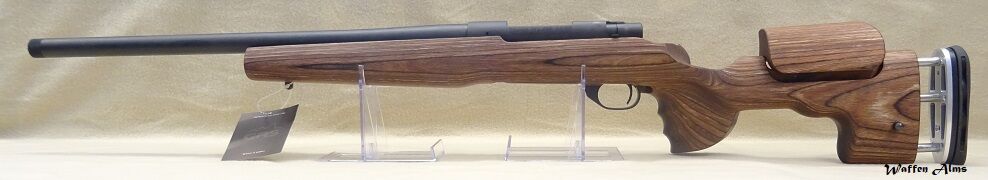 Der Repetierer des Herstelle Howa, Mod. M1500 Short Action im Kal. 308 Win ist in einem Holzschaft gearbeitet bei dem ein leicht abgesenkter und extra breiter Vorderteil einen stabilen Griff für das Schießen aus der Hand schafft. Ausgestattet mit dem klassischen SpeedLock-System.