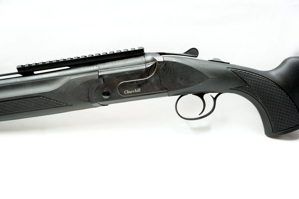 Die Bockdoppelflinte von Akkar nennt sich Chuchill 512 HD Defense und ist durch die kurzen Läufe sehr führig. Die Waffe ist im Kaliber 12/76 und besitzt einen Abzug für beide Läufe. Die Picatinnyschiene oben ermöglicht es ein Leuchtpunktvisier anzubringen. Die Schiene unter den Läufen könnte für ein Frontgriff verwendet werden oder für eine Beleuchtung (in Deutschland verboten).