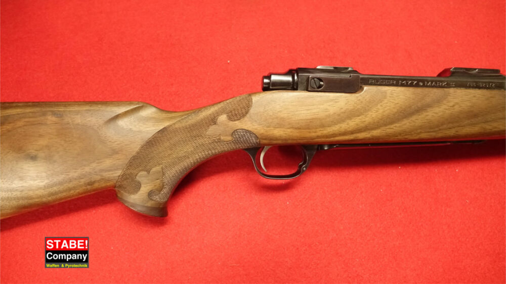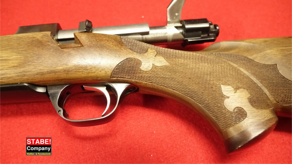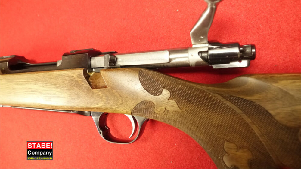 Original Ruger links System! aus gepflegter Sammlung Lauflänge 58cm Abzug - Schaftkappe 31,5cm Gesamtlänge 104cm Riemenösen Schaft ( Nussbaumholz) Spezialanfertigung, Jagdschaft mit Fis... ...weiterlesen