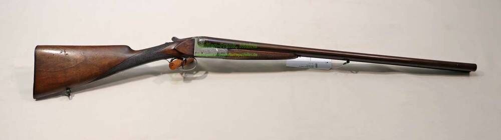 hochwertige Büchsenmacherarbeit in Stahl und Holz, mit Anson-Schloß, doppelter Laufhakenverriegelung mit zusätzlicher Purdeynase, Doppelabzug, Läufe Innen blank, Choke 1/2-1/1, außen nach belgischer Art fein geschliffen und gebräunt, Stahlsystem innen bunt eingesetzt, außen mit feiner floraler Handgravur (Taubenmotive), ebenso auf Abzugsbügel und Bedienteile, grau gebeizt, neutraler englischer Hinterschaft, Schaftlänge 365mm, mit leichten Gebrauchsspuren.....sehr gut ausbalaciert, ein Stück für den Flintenkenner und Liebhaber...Unikat