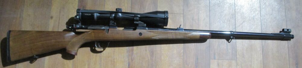 verkauft wird ein gebrauchter Repetierer 98er Favorit Safari im Kal. .375 H&H Lauflänge: 65cm Schaftlänge: 36cm Gesamtlänge: 118cm Zielfernrohr: Kahles 3-12x56 Absehen: Abs. 4 mit Leuchtp... ...weiterlesen