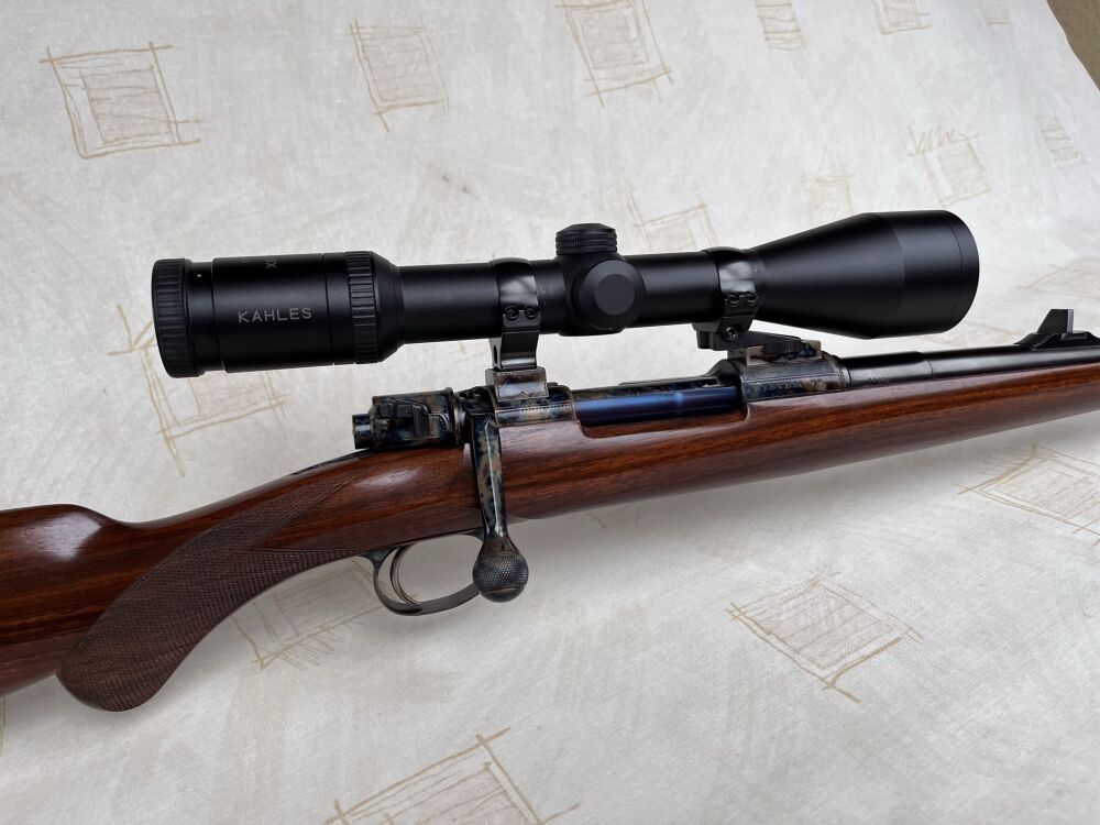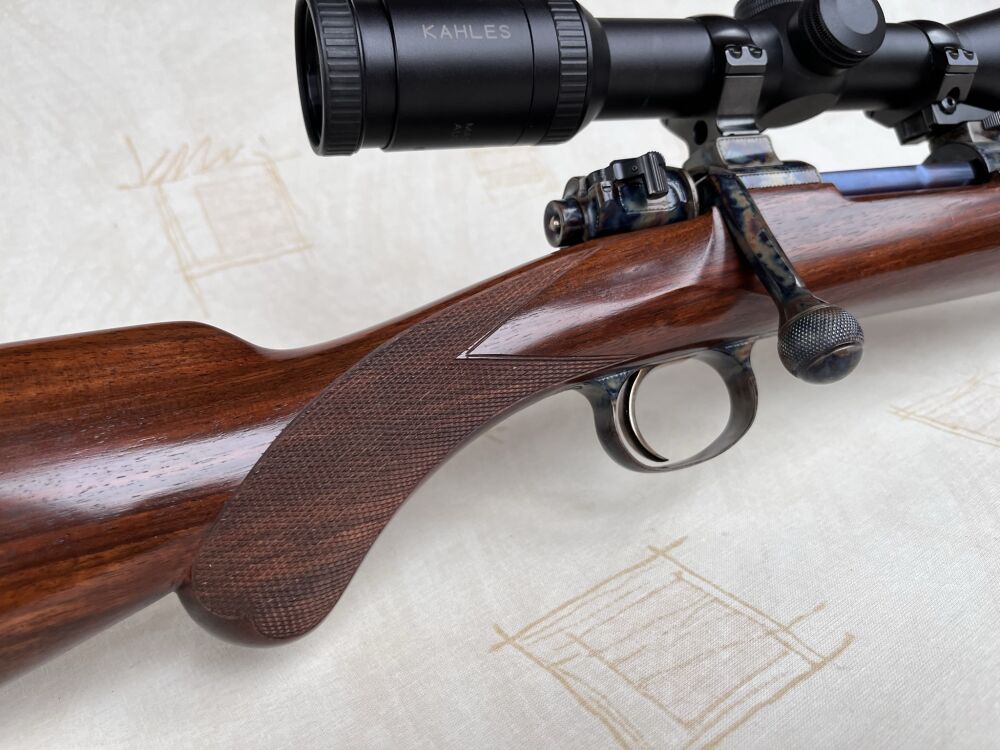 Klassische Repetierbüchse mit festem Magazinkasten. Lauflänge 580 mm schlanke Ausführung mit innen liegendem Magazin, 3 Schuß dezente englische Arabeskengravur und klassische Bunthärtung. Ziegler... ...weiterlesen