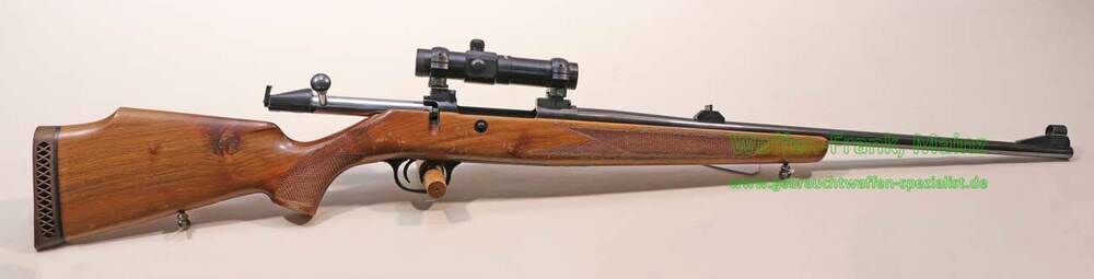 Selten geschossene Schrankwaffe, aus der letzten Walther Jagdbüchsen-Produktion, mit neu konstruiertem 6-Warzen-Zylinder-Verschluss mit perfekter Laufeigenschaft, mechanische Kammer- und Schlagstückverriegelung (noch mit originaler Bedienungsanleitung), 4+1 Schuss, deutscher Stecher - kann auch als Druckpunktabzug verwendet werden, Nußbaumschaft mit langgezogener Backe für Rechtsschützen, noch mit original Lack-Finish, welches zum Teil abgeplatzt ist, Schaftlänge: 380 mm, Schwenk-Montage mit ebenfalls gebrauchtem Leuchtpunkt-Zielgerät "AIMDOT",(leicht eingetrübt, aber mit voller Funktion), Nachrüstung mit Zielfernrohr daher vereinfacht möglich ...ein Stück zum Sammeln und Schießen...