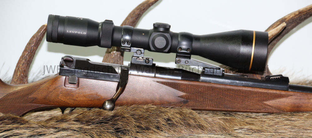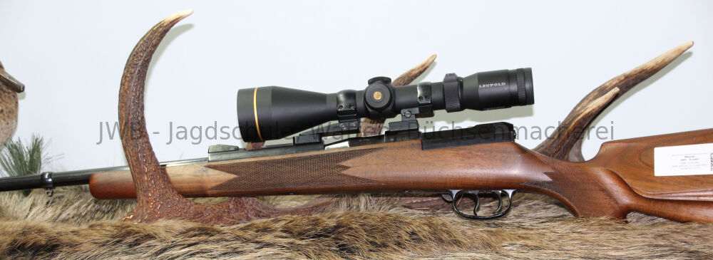 Mauser 66S mit bayrischer Doppelfalzbacke, neuwertiger Schaft mit ventilierter Schaftkappe. Mittels Schwenkmontage ist ein Leupold VX-R 4-12 x 50 mit Leuchtabsehen montiert. Schaftlänge 38 cm L... ...weiterlesen