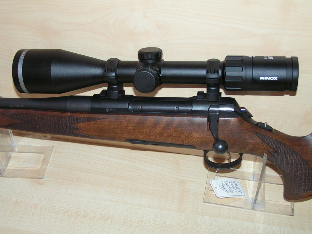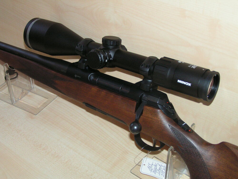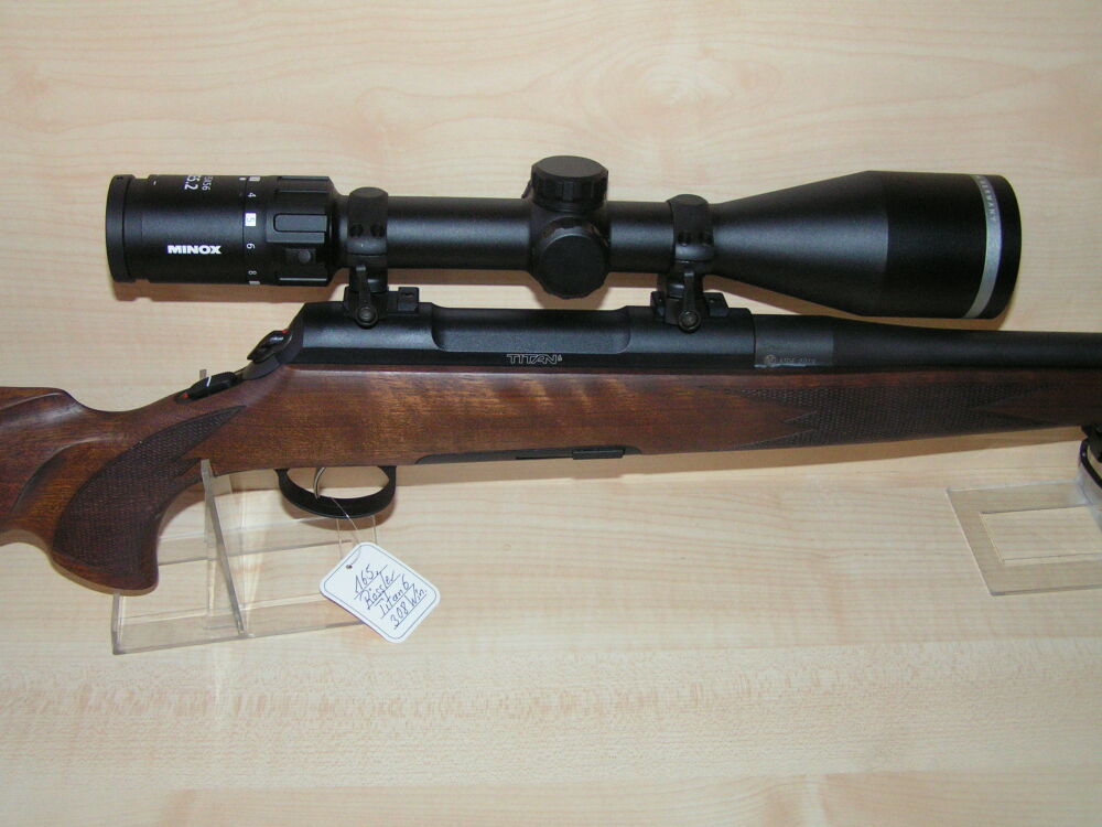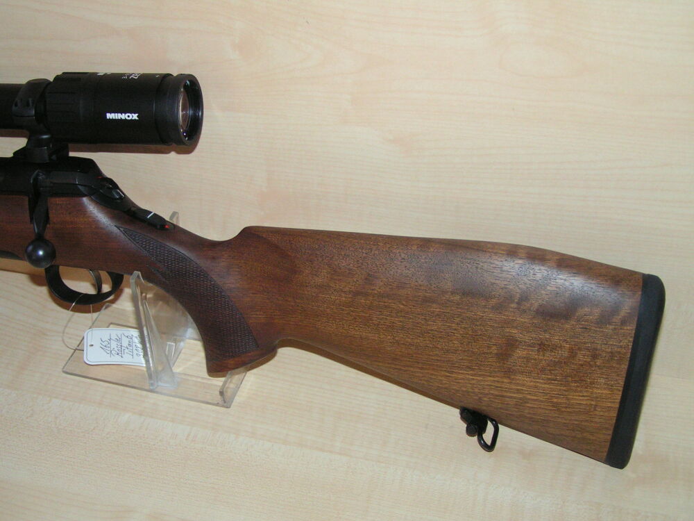 Linkssystem Repetierbüchse Rössler, Modell Titan 6 Luxus im Kaliber 308 Win. mit Feinabzug, 3 - Stellungssicherung. 3 Schuß Magazin, 51 cm Lauf mit Mündungsgewinde, Weavermontage und Zielfernrohr Minox 3 - 15 x 56 Leuchtabsehen 4.
