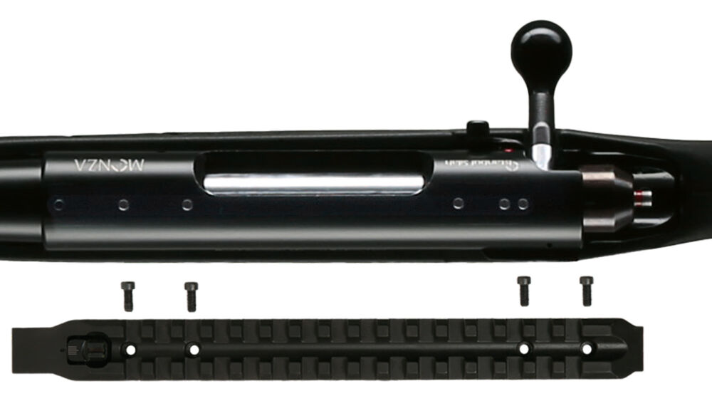 Die Repetierbüchse MONZA bietet alles was man von einem modernen Jagdgewehr erwartet. Ein solides System mit konventioneller Verriegelung, seitlicher Sicherung, Direktabzug und aufgesetzter Picatinny-Schiene, ein leichtgängiger Verschluss, einen präzise schießenden Lauf mit Mündungsgewinde, ein Metallmagazin und einen ergonomischen Kunststoff-Schaft mit Schaftrückenverstellung.