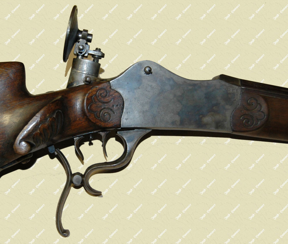 Feuerstutzen, von G. Goehring Garmisch Kal. 8,15 x 46 R, Martini System, Tirolerschaft mit Schaftverschneidung Sonderschäftung Lauf kanneliert Goldeinlage am Lauf abgegriffen Dioptervisierung,... ...weiterlesen