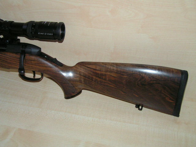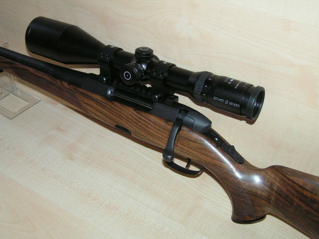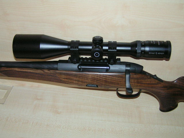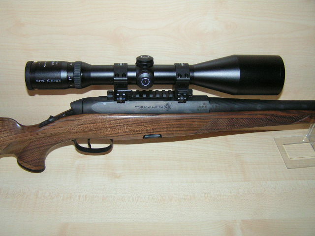 Linkssystem Repetierbüchse Steyr Mannlicher, Modell SM 12 Goiserer im Kaliber 308 Win. mit Handpannung, 51 cm Lauf mit Mündungsgewinde, Weaverschiene, Mack Kuick Schnellspannmontage und Zielfernrohr Schmidt & Bender Klassic 2,5 - 10 x 56 Leuchtabsehen 4.