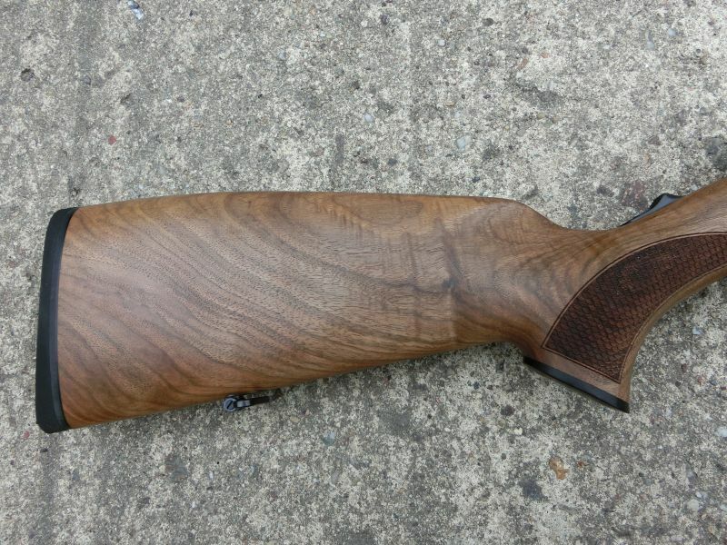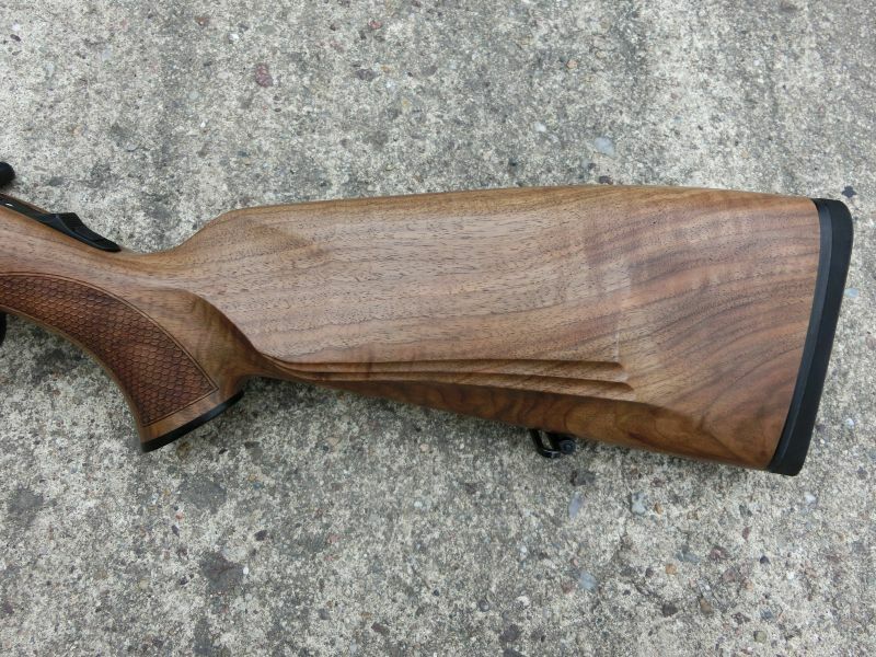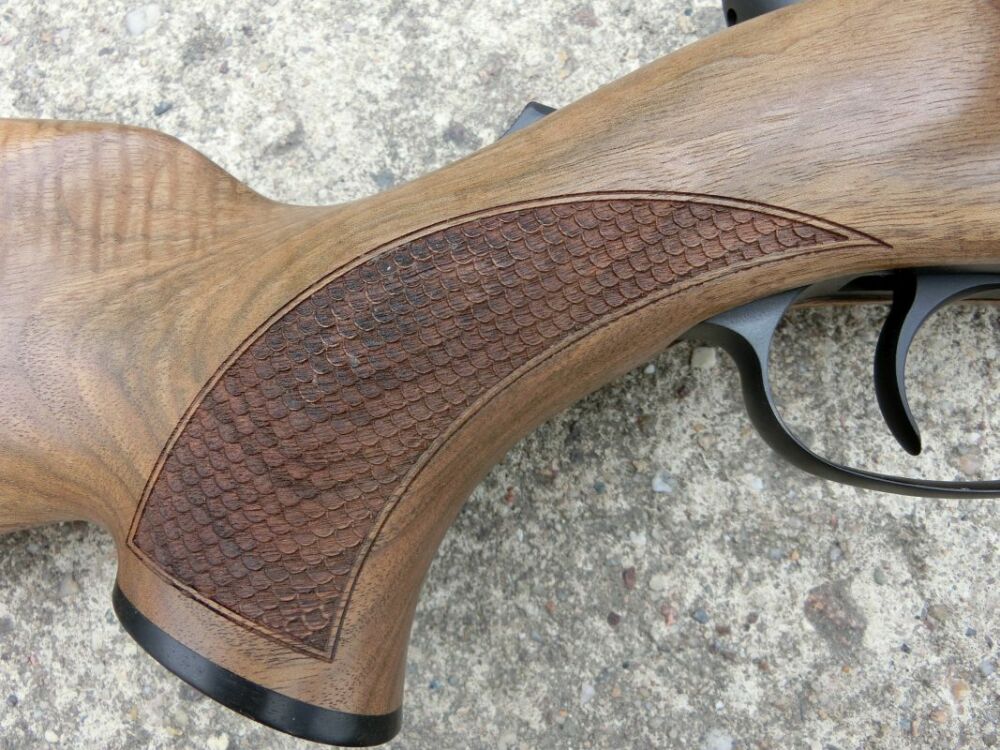 -Schaft: Halbschaft aus Europa . Walnussholz, Bayrische Backe mit Doppelfalz und Schuppenfischhaut