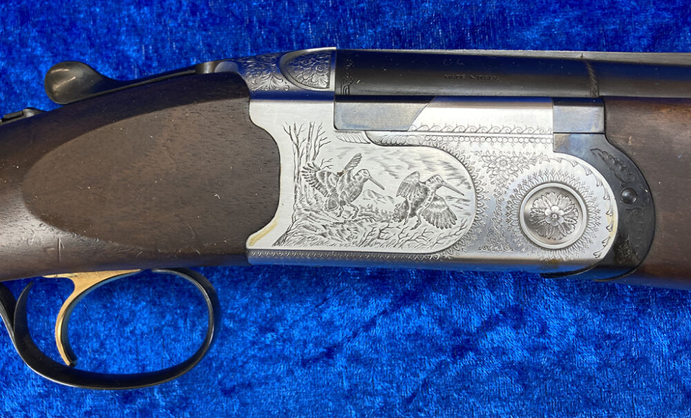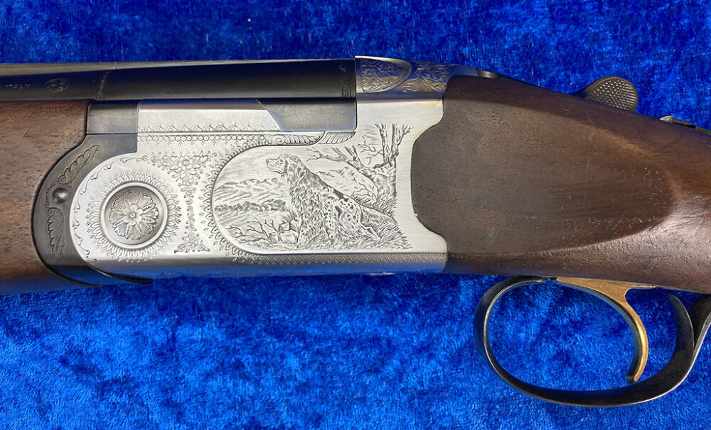Wir verkaufen diese schöne Bockdoppelflinte im Kundenauftrag. Die Waffe stammt aus dem Nachlaß eines Jägers und ist in einem sehr guten Zustand. Sie wurde, wie viele Jagdflinten, wohl nicht oft geführt. Die Läufe sind 1/2 und Voll-Choke mit einer ventilierten 6 mm Schiene und Perlkorn ausgestattet.
