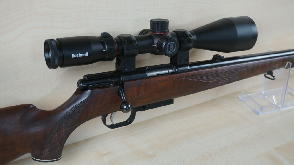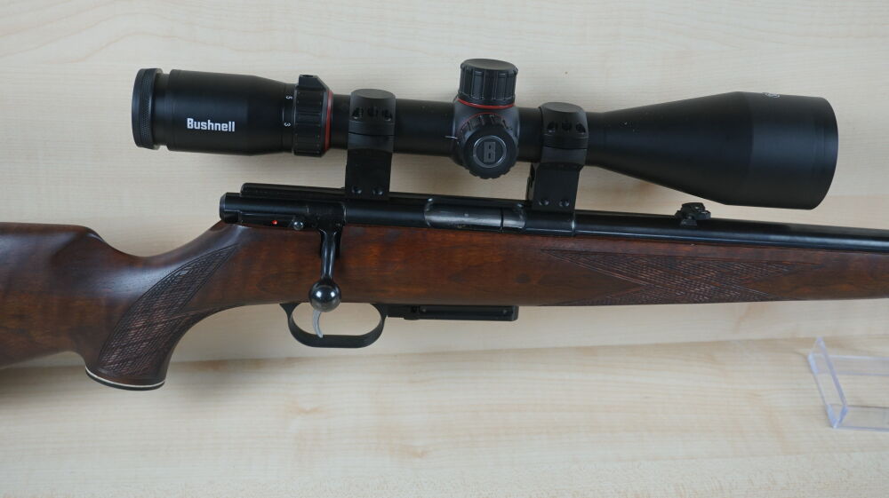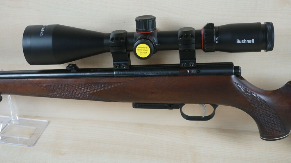 Repetierbüchse Weihrauch, Modell HW 60 J im Kaliber 222 Rem. mit Druckpunktabzug, 3 Schuß Magazin, Visierung, Aufschubmontage und Zielfernrohr Bushnell Nitro 3 - 18 x 56 Leuchtabsehen 4. ...weiterlesen