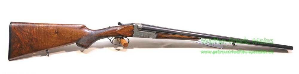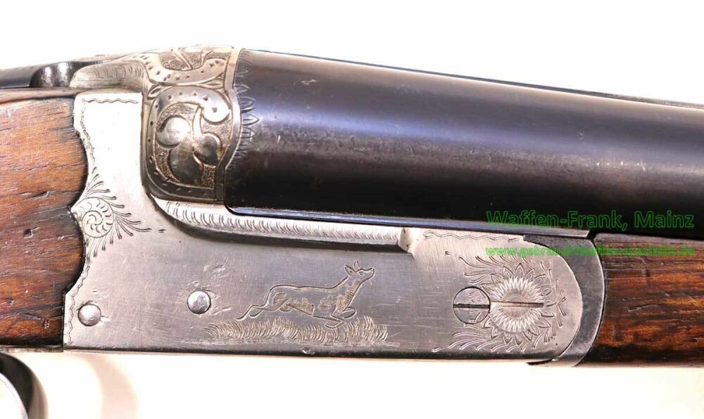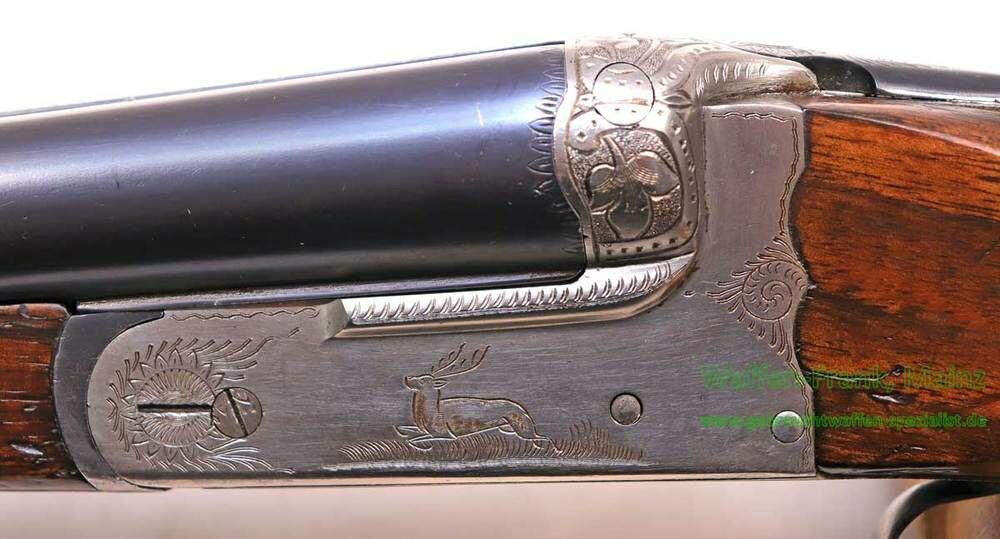 Klassisches Anson-Schloß mit Doppelabzug und automatischer Sicherung, Choke 1/2 - 1/1, leichte Handgravur auf blank vernickeltem Systemkasten und Muschel sowie Bedienteilen, klassischer Jagdschaft mit Backen für Rechtsschützen, Schaftlänge: 365 mm, aus gut gemasertem Nußbaum-Maserholz Klasse 3-4, Fischhaut leicht abgewetzt ...gut ausbalancierte Flinte... ...Richtpreis: ca. Euro 880,-- ...Gelegenheit: Euro 198,--