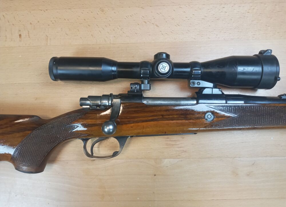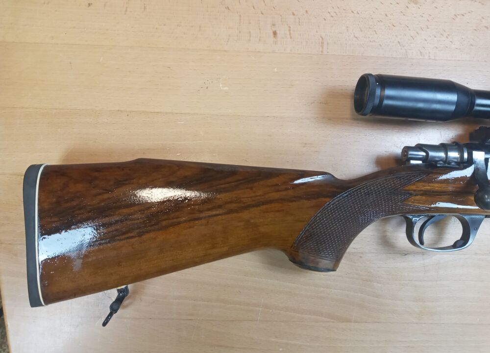 Repetierbüchse Santa Barbara M98 Kaliber .270 Winchester Lauflänge 600mm Schaftlänge 340mm(Abzug - Mitte Schaftkappe) Gesamtlänge 1130 mm Flintenabzug Schiebesicherung Schwenkmontage Zie... ...weiterlesen