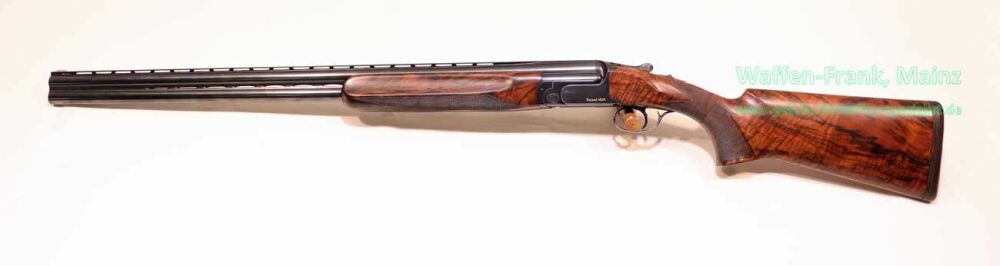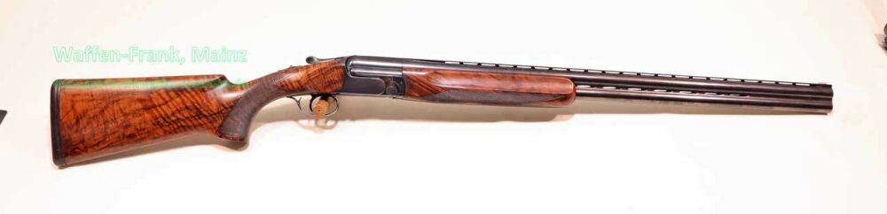 selten geschossen, nur auf wenigen Jagden geführt, erster Lauf mit klassisch ventiliertem Laufbündel und 11mm Parcourschiene, Choke 1/2-1/1, zweiter Lauf im Werk eingebaut 1990, freiliegend, mit zwei auswechselbaren Chokes 1/4-1/2, im Reißverschluß-Futteral, ebenfalls mit 11mm Schiene, klassisch, hochglanzbrünierter, scharzer Stahlkasten mit herausnehmbarer, selektiver Einabzugeinheit, original neutraler, backenloser Hinterschaft, Schaftlänge 370mm inkl. Gummikappe mit Ziegenlederverkleidung, weiter Maße Standard, aus hochwertigstem Wurzelmaserholz Kl. 9-10.....der Ferrari an Flinte für Jagd und Sport.....