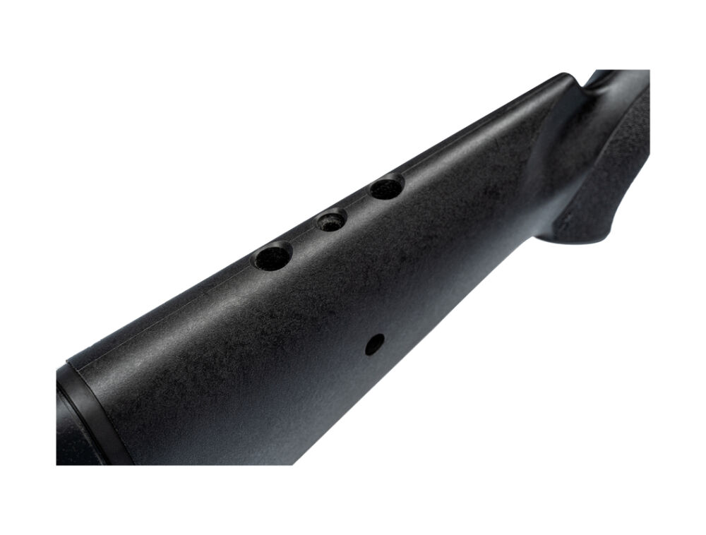 Die auf den ersten Blick schlicht erscheinende A-Bolt 3+ Compo bietet Ihnen eine sehr große Auswahl an Anpassungsmöglichkeiten. Der Schaft verfügt über eine schwarze Backe, die Sie ganz einfach durch eine andersfarbige Backe oder eine verstellbare Schaftbacke ersetzen können. Der breite und flache Vorderschaft bietet ihrer Büchse eine hohe Stabilität, wenn sie auf dem Hochsitz oder auf dem Ansitzstuhl aufliegt. Der Vorderschaft kann ebenfalls ausgetauscht werden.