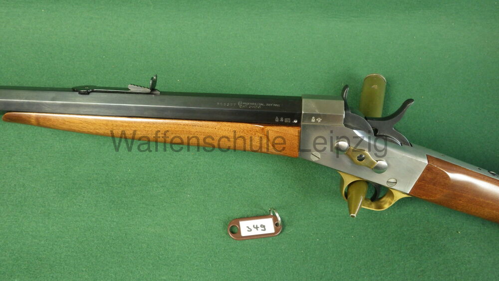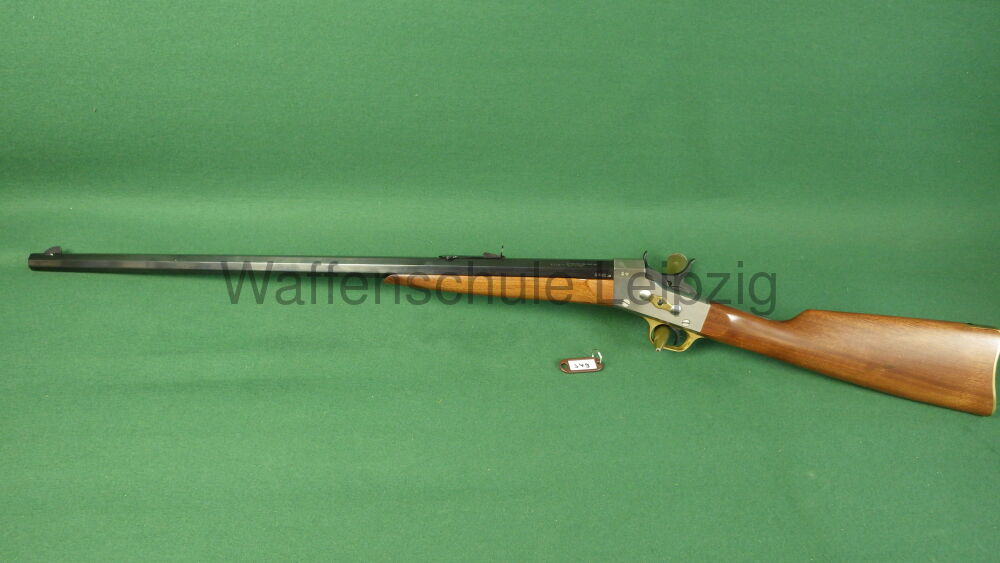 Einzelladerbüchse in .357 Mag, Pedersoli Rolling Block Target CAT 3523, es befindet sich eine kleine Druckstelle am Schaft, aber sonst ist die Waffe in einem sehr guten Zustand