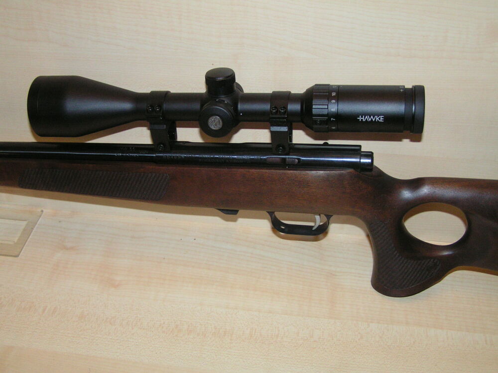 Repetierbüchse Weihrauch, Modell HW 66 im Kaliber 17 Hornet mit Lochschaft, Lauflänge 56 cm und Mündungsgewinde, 4 Schuß Magazin, Aufschubmontage und Zielfernrohr Hawke, Vantage 4 - 12 x 50 Leuchtabse... ...weiterlesen