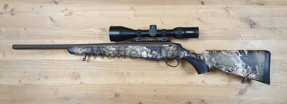 Tikka T3x Veil Wideland• Kaliber .308 Winchester• Camo Schaft• gefluteter Lauf und Verschluss• Lauflänge 51 cm• Mündungsgewinde 5/8x24• Lauf Cerakote beschichtet• Magazin 3+1komplett montiert & ei... ...weiterlesen