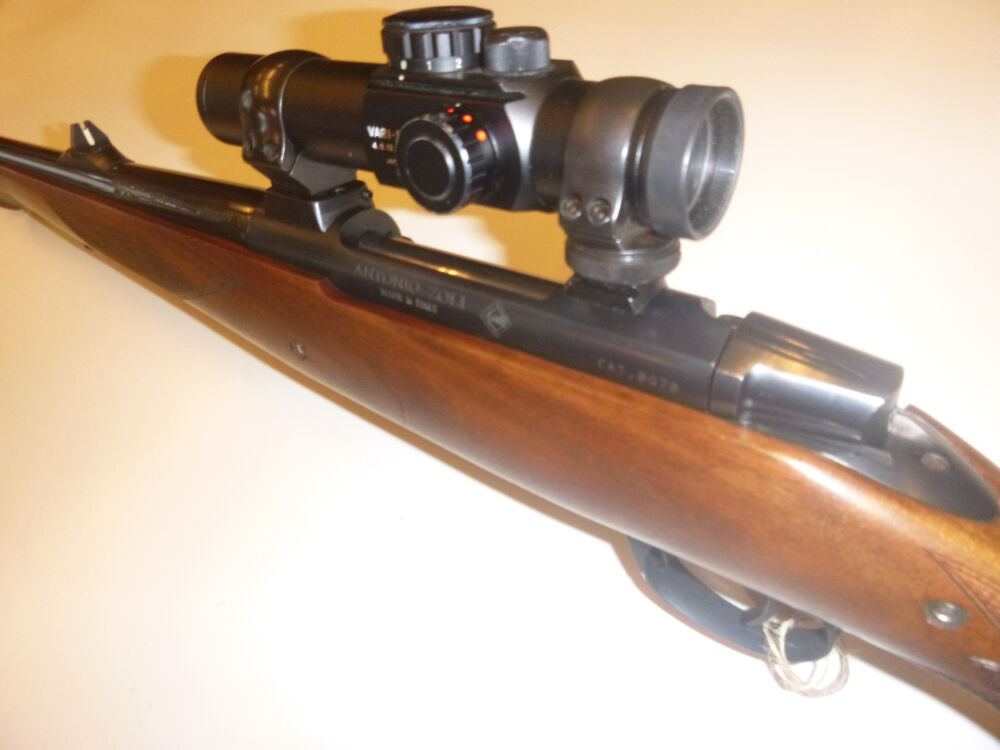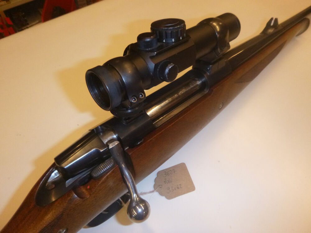 Repetierbüchse  Zoli Kal. 9,3x62 Rotpunktvisier Hakko EAW-Schwenkmontage Lauflänge: 52 cm Schaftlänge: 37,5 cm Schaft wurde an Kolbenhals repariert Zustand: sehr gut ...weiterlesen