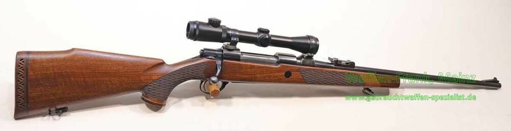 Gut schießende und hochwertige Verarbeitung nach Skandinavischen Vorbild, gut gängiger Zylinderverschluss mit Flintenabzug und abklappbarem Magazindeckel, verstellbare Visierung, Suhler Einhak-Montage, mit ZF Micro DOT 2-7x32 / mit Leuchtabsehen, Nußbaumschaft, mit leichtem Trapez-Vorderschaft, hochgezogene Backe für Rechtsschützen, Vorderschaftabschluss und Pistolengriffkäppchen als Edelholzabschluss, Schaftlänge einschließlich Gummikappe: 350 mm ...eine zuverlässige und gut schießende Büchse fürs ganze Leben ...aktueller Richtpreis: Euro 4.380,- ...Gelegenheit: Euro 1.295,-