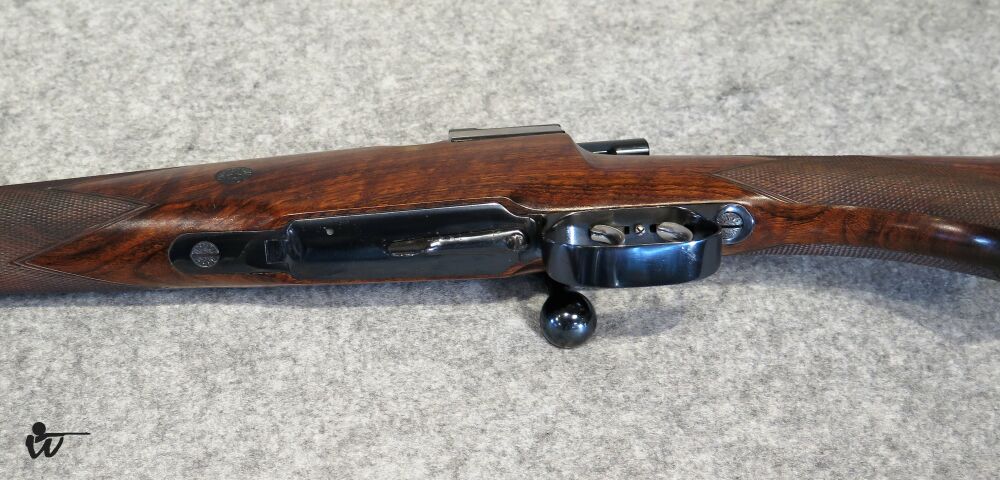 | Sonstiges | Es handelt sich hier um eine Rarität die man so einzigartig erwerben kann. Die Custom Repetierbüchse ist aus einem originalem Zivil Mauser Kurzsystem in neuem Glanz entstanden. An der Büchse ist ein Luxusschaftholz verbaut und hat sie hat hochglanzgeschlossene Poren nach englischer Art. Die Waffe hat einen originalen Magazinkasten mit deutschen Stecher und Klappdeckel mit einem untenliegenden Öffnungshebel. Dazu kommt eine seitlich liegende 3-Stellungssicherung. Die Kimme und das Korn sind mit Goldeinlage verziert. Die Brünierung ist neu und tief-schwarz. |