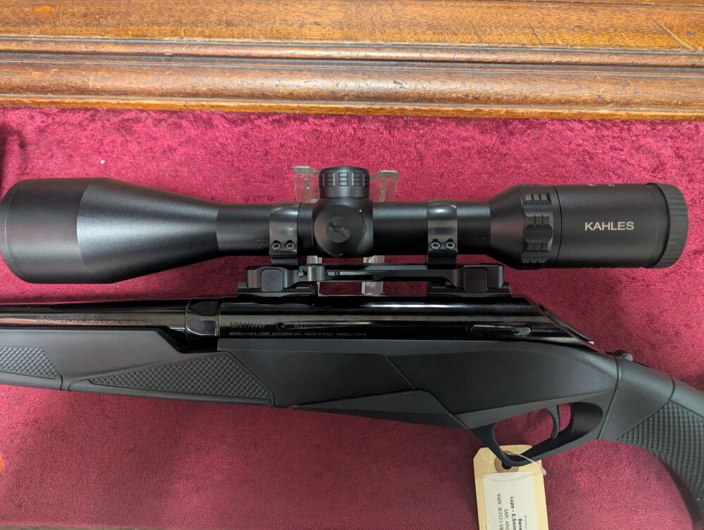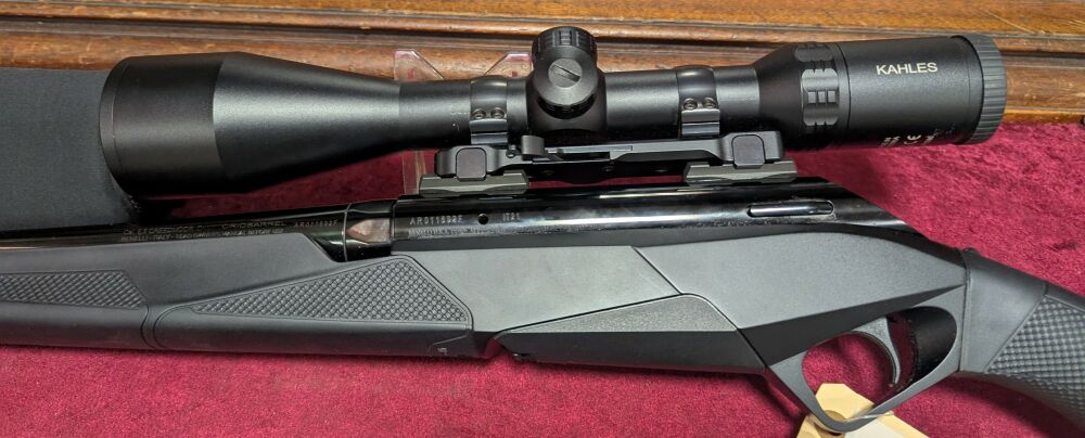 Gebrauchte Repetierbüchse Benelli Lupo Best Black mit Kunststoffschaft. Lauflänge 51 cm mit Mündungsgewinde M14x1 Komplett montiert mit einem Kahles Helia 2,4-12x56i mit Absehen 4-Dot auf Henneberge... ...weiterlesen