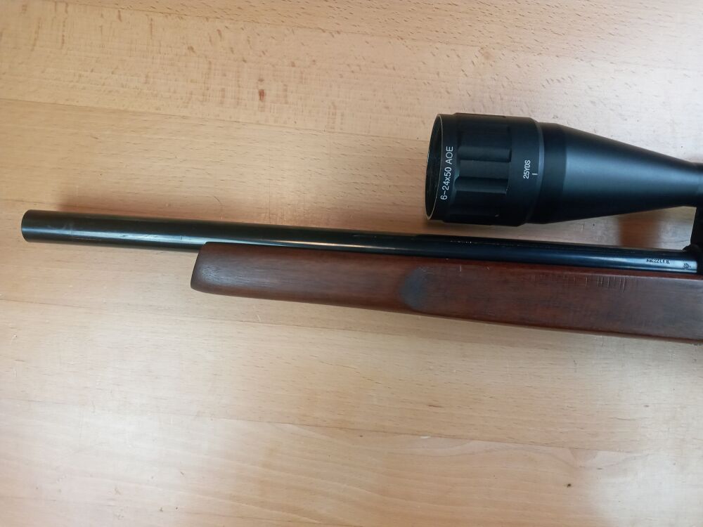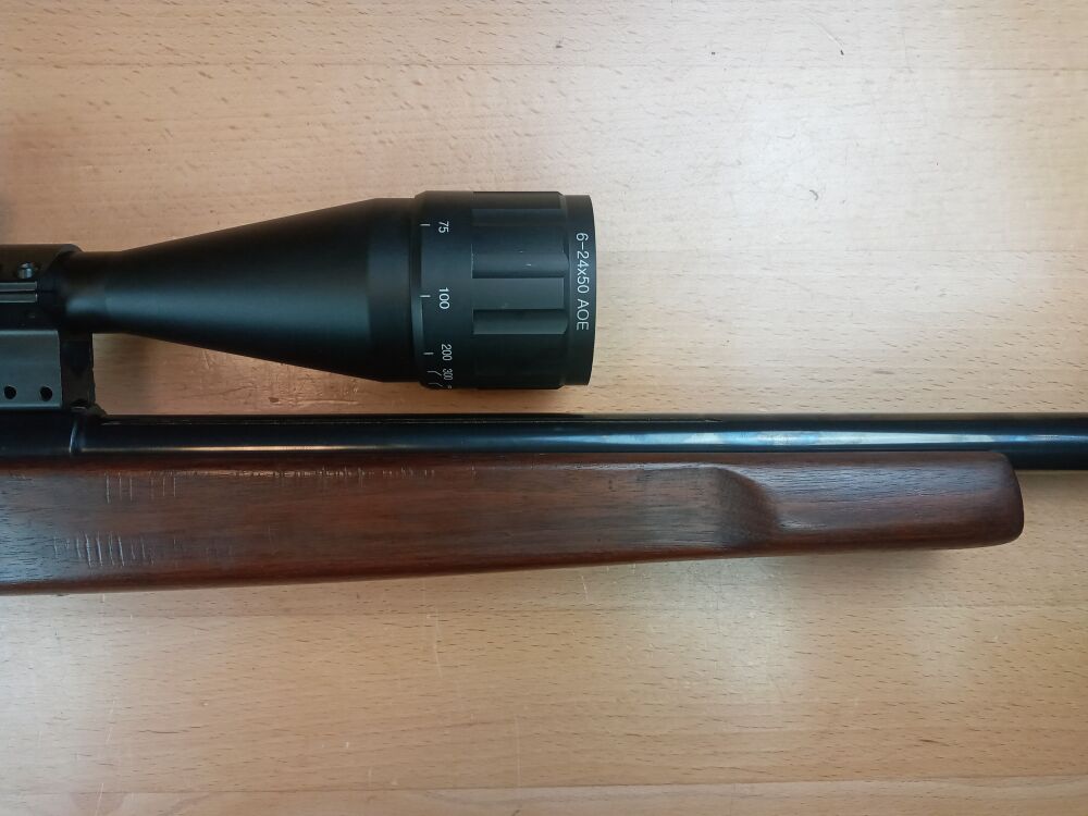 Kleinkaliberbüchse Walther KK Match Kaliber .22lr Lauflänge 410mm Schaftlänge 360mm ( Abzug - Mitte Schaftkappe) Aufschubmontage Zielfernrohr "Celric" 6-24 x 50 Paralaxenausgleich... ...weiterlesen