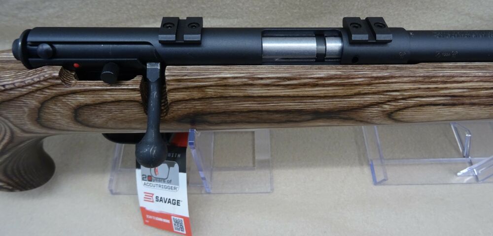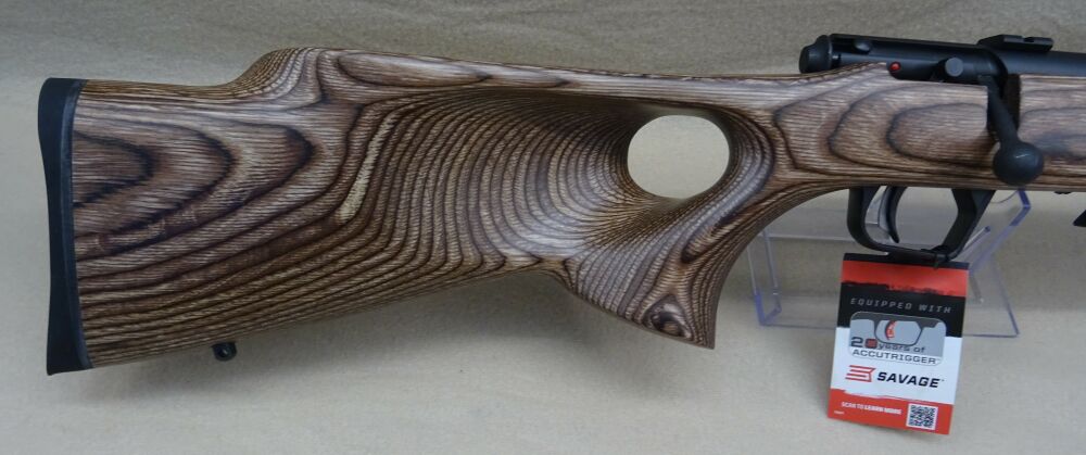Die Kombination aus einstellbarem AccuTrigger -und dem 21-Zoll-Lauf aus Kohlenstoffstahl, verleiht dem Savage Kleinkaliber-Gewehr eine außergewöhnliche Präzision. Das Gewehr ist mit einem werkseitig montierten Weaverbasen ausgestattet und verfügt über ein Daumenlochschaft aus Laminat und einem herausnehmbaren 5-Schuss-Magazin.