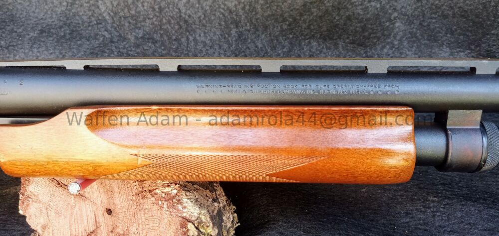 Neuwetige Vorderschaftsfinte Remington 870 Super Express, neuwertiger Zustand, Lauf blank, Edelholz Schaft mit kräftiger Gummi Schaftkappe, Sicherung am Abzug, Choke Bohrung für Wechselchoke, ventilie... ...weiterlesen