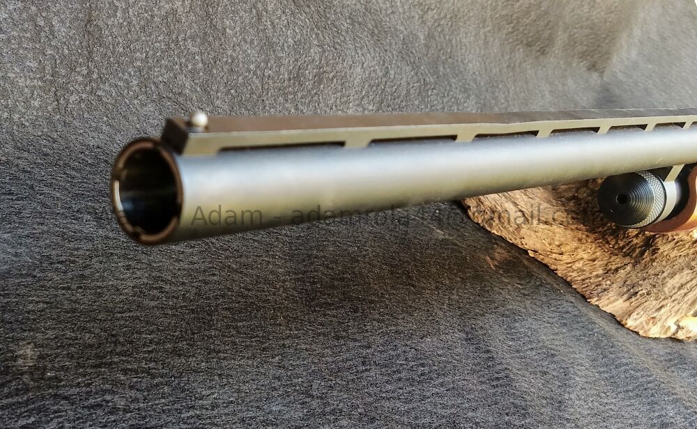 Neuwetige Vorderschaftsfinte Remington 870 Super Express, neuwertiger Zustand, Lauf blank, Edelholz Schaft mit kräftiger Gummi Schaftkappe, Sicherung am Abzug, Choke Bohrung für Wechselchoke, ventilierte durchgehende Laufschiene. Anthrazit beschichtete Ganzstahlflinte für höchste Ansprüche. Gesamtlänge: 1220mm. Lauflänge: 705mm. Gewicht: 3600g.