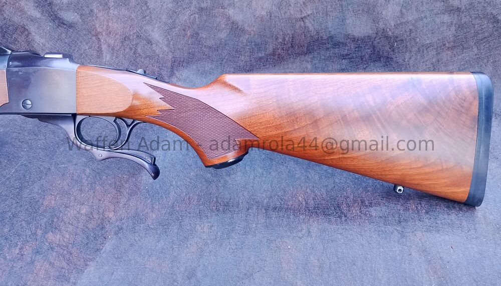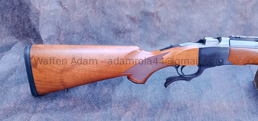 Blockbüchse Ruger N°1, beliebte Jagd-/ und Sportwaffe bekannt durch Qualität und Präzision. Schön gemaserter Nussholzschaft mit Pistolengriff, gerader Schaftrücken. Gummi Schaftkappe. Vorderschaft m... ...weiterlesen