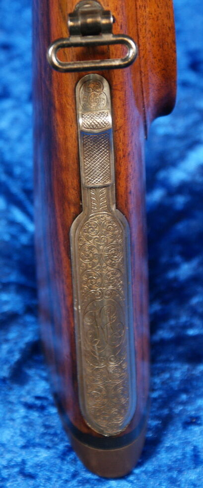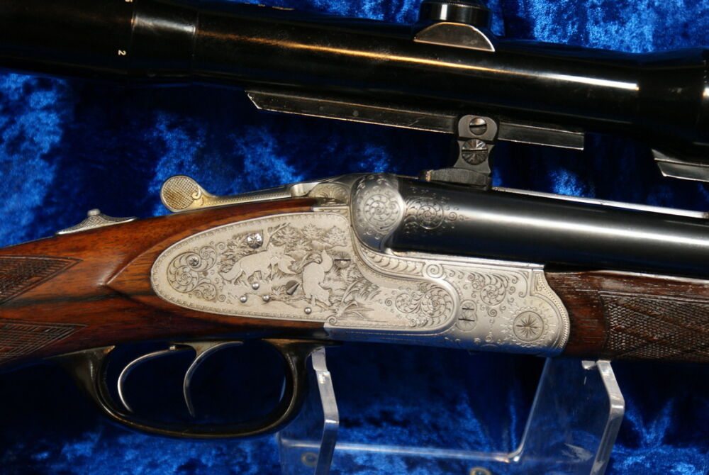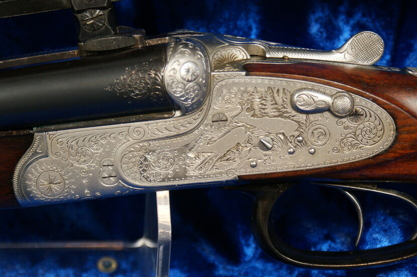 Graviert ist Fuchs mit Ente und Rehwild. Der Abzugsbügel